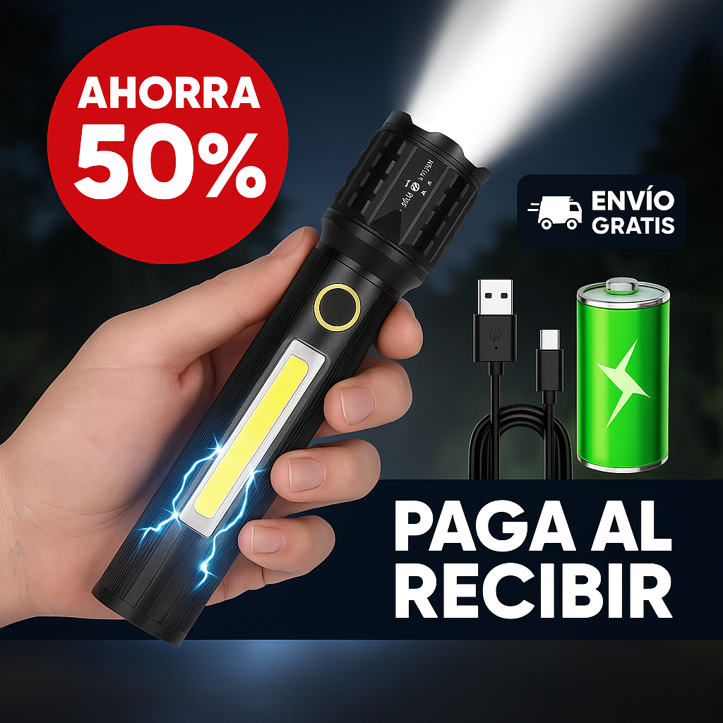• Además, esta linterna cuenta con funciones adicionales que la hacen aún más versátil. Con su capacidad de zoom, puedes ajustar el enfoque para obtener una iluminación de hasta 200 metros, lo que te permite explorar más lejos en entornos oscuros.